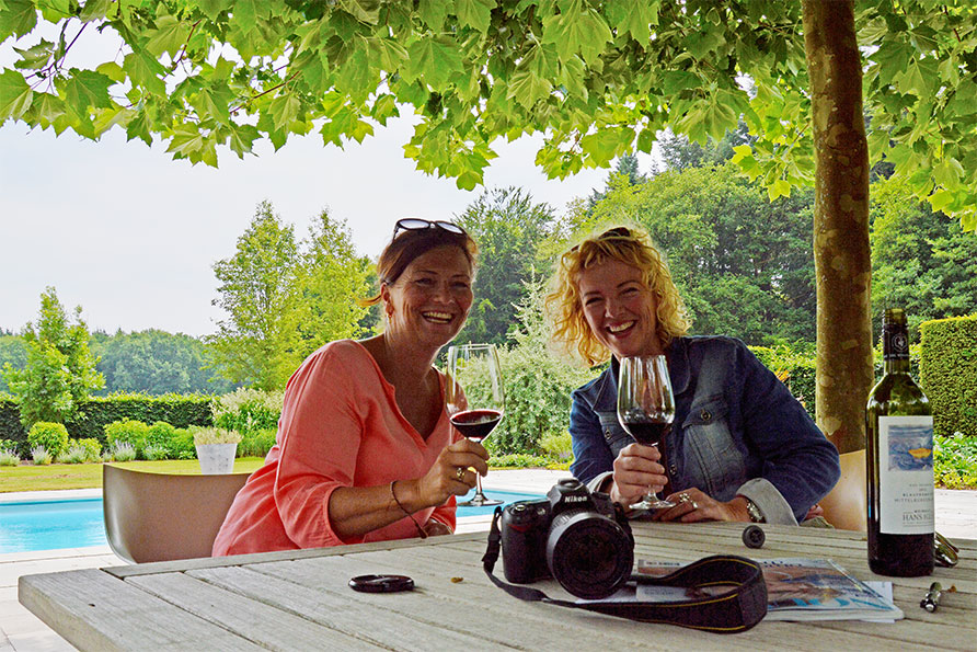 “Natuurlijk ontmoet ik veel verschillende huiseigenaren, meestal Nederlanders, Belgen en Fransen, soms ook Brits of Scandinavisch. Er zitten zelfs bekende Nederlanders en Vlamingen bij, maar ik ga je natuurlijk niet vertellen wie dat zijn”, lacht ze geheimzinnig. “Sommige eigenaren wonen permanent in Nederland en willen dat hun tweede huis minder leegstaat. Anderen gaan echt voor de opbrengst. Meestal ontstaat een leuk contact met ze en het draait dan ook vaak uit op samen tafelen met een goed glas wijn. Op een bijzonder wijngoed in Entrecasteaux in de Provence nam de eigenaar me bijvoorbeeld mee met zijn jeep door de wijngaarden. Heerlijke wijn trouwens! Hier zag ik mijzelf al zitten met vrienden aan tafel. Mooi ook hoe ze de link met wijn binnen hebben voortgezet met een heel originele lamp boven de eettafel!”