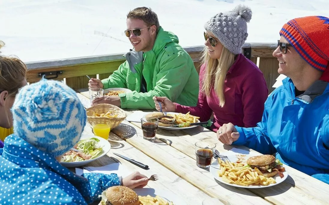 Eten is een van de belangrijkste onderdelen van de wintersport. Omdat je heel dag in de buitenlucht in beweging bent eet je voor 10. Ach, die ene week per jaar kun je heerlijk genieten van die zo ontzettende verfijnde Oostenrijkse keuken met bratwürsten en schnitzel als hoogtepunt.