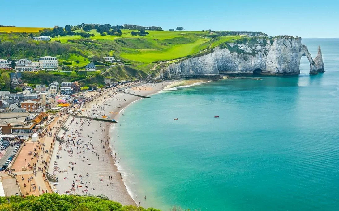 In Normandië ligt een geweldig uitgestrekt zandstrand bij het historische dorpje Etretat. Vanaf het strand heb je een spectaculair uitzicht op de bijzondere krijtrots l’Aiguille. Deze rotsformatie is een echte trekpleister. Hij lijkt namelijk op een reusachtige olifant! Naast zonnebaden kun je in Etretat ook uren flaneren op de boulevard vol authentieke Franse eettentjes. En als je even genoeg hebt van het strand, bezoek je de oude, met hout overdekte markt met typisch Normandische waar. Genoeg te doen!