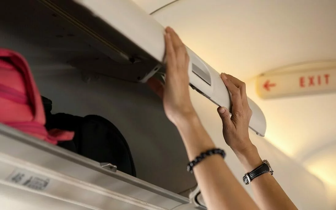 3. Onder druk je handbagage in het handbagagevak neerleggen