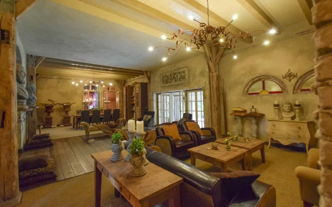 Zoals vele op televisie hebben kunnen zien bevindt zich binnen in deze schuur een prachtige en zeer unieke woning. Wanneer je door de antieke houten ‘Ibiza Style’ deuren binnenkomt, waan je je gelijk in een andere tijd. Elk hoekje van dit huis is prachtig in detail afgewerkt en het geheel is stijlvol ingericht. De woning is van alle gemakken voorzien. Zo zijn er meerdere jacuzzi’s, loungeruimtes en een grote BBQ. In de grote moderne keuken kunnen heerlijke maaltijden worden bereid en aan de lange houten tafel kan na het diner nog gezellig worden nageborreld. Je kunt de borrel natuurlijk ook mee naar buiten nemen en op het overdekte terras tot in de late uurtjes heerlijk loungen en chillen.
