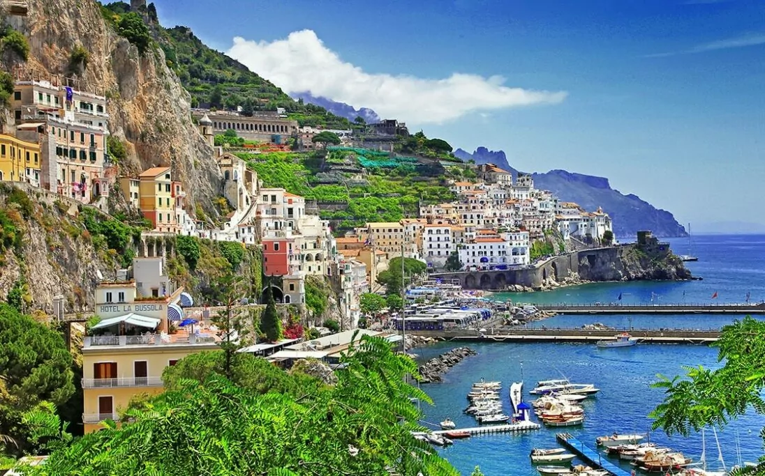 De Amalfikust is niet zomaar een kustlijn, hij is niet voor niks te vinden op de UNESCO Werelderfgoedlijst. Dorpjes met kleurrijke huisjes worden afgewisseld met smalle weggetjes en azuurblauwe zee. Op deze route in Italië heb je overal een schitterend uitzicht. In een van de kleine dorpjes kun je natuurlijk ook nog genieten van alles wat de Italiaanse keuken te bieden heeft. Pasta, pizza, risotto: je hoeft hier zeker niet met honger rond te rijden!