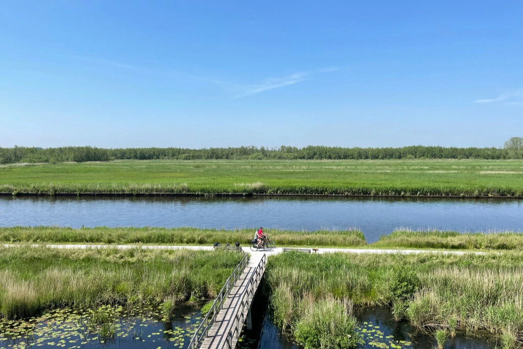 Het vroege voorjaar is een waar spektakel in de wetlands, wanneer duizenden grutto’s, kemphanen en wulpen er doorheen trekken. De zomer is het seizoen van de ooievaars, er zijn palen geplaatst zodat deze vogel nesten kan bouwen.