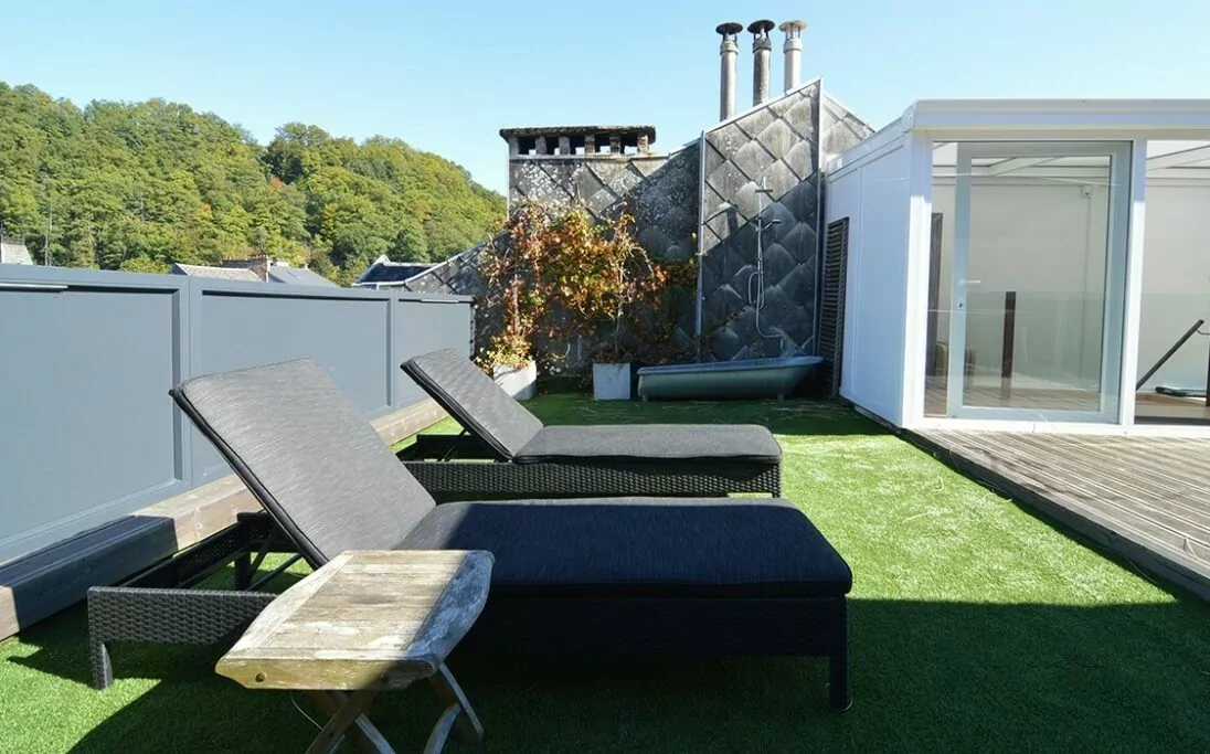 Wat? We vonden een werkelijk schitterend appartement in het centrum van Spa. Dankzij zijn centrale ligging ben je in een mum van tijd aan het Casino van Spa of aan de voet van de unieke lift die je tot aan de Thermen van Spa brengt. Het appartement, volledig in loftstijl, is ideaal voor een romantisch uitje of een vakantie met een bevriend koppel. Je hebt toegang tot twee ruime en gepersonaliseerde slaapkamers, een comfortabele woonkamer met een gezellige open haard en een super uitgeruste keuken. Absoluut uniek is ook het dakterras, 100m² en dat helemaal privé! Bovendien staat op dit terras een authentiek ligbad, ideaal om je te verfrissen op een zonnige zomerse dag.