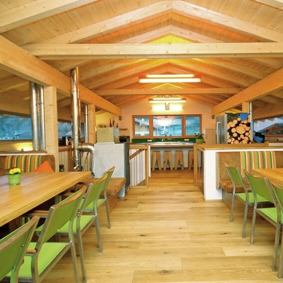 Een grote lodge in Kaprun biedt plaats aan diverse sfeervolle appartementen, studio’s en penthouses, variërend in grootte van drie tot acht personen. De inrichting is strak en sfeervol met opvallende elementen. De kenmerkende sfeer van de Alpen zie je terug in de geweien aan de muur, de natuurlijke materialen en de bedhoofden van geblokte stof. De afwerking is echter wel modern en strak, waardoor het geheel een hippe bergsfeer heeft. Vanuit hier heb je natuurlijk toegang tot het skigebied Zell am See-Kaprun, één van de beste skigebieden van Oostenrijk!