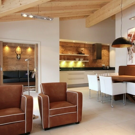 Het Oostenrijkse Salzburgerland biedt plaats aan het luxe Alpin Chalet Filzmoos waar je met een groep tot twaalf personen kan verblijven. Dit unieke chalet is onder architectuur gebouwd. Het chalet is van binnen en buiten opvallend. Vooral de grote, open ruimte op de eerste etage trekt de aandacht met de zeer ruime, professionele keuken en volop zitplaatsen om met de hele groep gezellig samen te eten. Ook hier gaat moderne vormgeving gepaard met veel houtgebruik, wat een gezellige sfeer oplevert. Voor de pistes ga je naar de Salzburger Sportwelt, onderdeel van Ski Amadé.