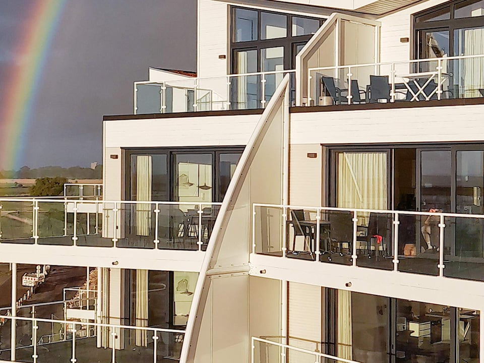 Geniet van het prachtige panoramische uitzicht op de Oostzee van 's ochtends tot 's avonds. De moderne en comfortabel ingerichte woning bestaat uit een open keuken-woonruimte met eetplaats en toegang tot het grote balkon / het grote terras. Daarnaast is er een badkamer met regendouche met stoomfunctie en vloerverwarming.
