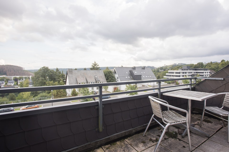 Tegen betaling is er ook een wasmachine beschikbaar. In de kelder ernaast bevindt zich een droogruimte. Met de Sauerland Card, die u bij aankomst van ons ontvangt, kunt u gratis met de trein en bus reizen. Het huis ligt in de directe omgeving van de skilift "Am Herrloh" en de skiliftcarrousel, tegenover Hotel "Der Brabander" onder de St.-Georg Schanze. Slechts een paar minuten lopen naar de avonturenberg Kappe met de bobsleebaan, het bikepark, de zomerrodelbaan en het klimbos. Ook het centrum met zijn talrijke winkels, boetieks en restaurants is te voet in een paar minuten te bereiken. Eten, drinken en feesten kan in de talrijke bistro's, restaurants, discotheken en après-ski gelegenheden in de omgeving. Voor degenen die niet zo veel willen lopen, hebben we een bushalte (gemeentehuis) vrijwel voor de deur. De halte wordt bediend door bijna alle grote lijnen.