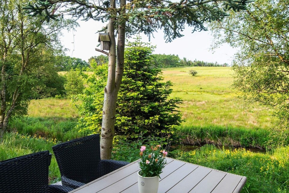 Het hele jaar door bewoonbare accommodatie, ingericht met een whirlpool in de badkamer en veel aandacht voor detail. Gelegen in een schilderachtige omgeving. Aan de achterkant van het huis stroomt de idyllische rivier Idom Å. Een mooie bestemming voor vakantiegangers die graag de natuur in gaan met bossen, weiden en velden. Vanuit de woonkamer en het terras heeft u een prachtig uitzicht op het groen met de rivier, velden en grote bomen.