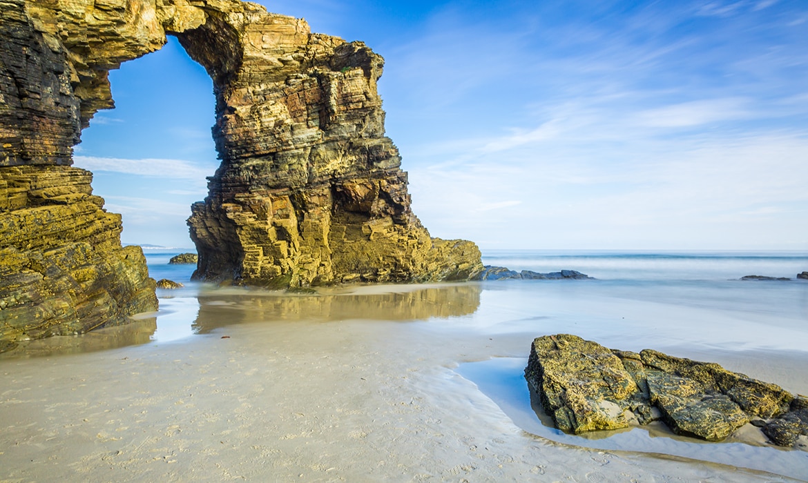 Bij Playa de las Catedrales in Spanje is het water omringd door kliffen wat voor spectaculaire uitzichten zorgt. De kliffen die langs de kust van de provincie Lugo staan, zijn meer dan 32 meter hoog. Wanneer het eb is kun je tussen en onder de bogen doorlopen, maar het is ook bijzonder om hier in het water te zwemmen en te genieten van de golven. Let op: je moet wel reserveren bij de plaatselijke gemeente om dit strand op te kunnen (gratis).