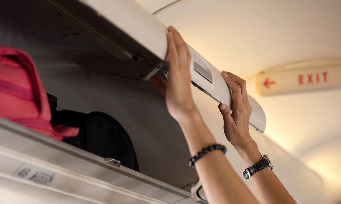 3. Onder druk je handbagage in het handbagagevak neerleggen