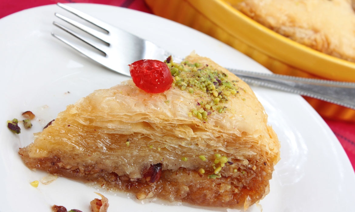 In Griekenland kan baklava op het menu niet ontbreken. Dit mierzoete nagerecht wordt gemaakt van filodeeg en vervolgens wordt het gevuld met verschillende nootsoorten, wat kaneel, citroen- en sinaasappelsap en vanillesuiker. Na het bakken wordt er een lekkere scheut van honingsiroop en suiker overheen gegoten. Natuurlijk is dit niet het enige nagerecht wat er geserveerd wordt. Want naast baklava zie je ook veel galaktoboureko op de kaart staan. Dit is een nagerecht dat gemaakt wordt van melk ingrediënten, eieren, boter, suiker en griesmeer en natuurlijk filodeeg.