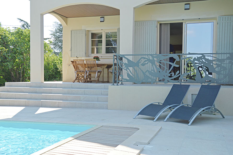 Ook bijzonder is het huis van kunstenaar Petra Tamboer die in de Pyreneeën gesetteld is. Ze heeft twee oude schuren in de Tarn-et-Garonne helemaal zelf verbouwd tot loftachtige gîtes. Een feestje om daar op vakantie te zijn! Ze maakt heel bijzondere, gietijzeren objecten en hekken. Een andere huiseigenaar heeft kunst van haar gekocht voor bij het zwembad van de villa! Mooi hè!