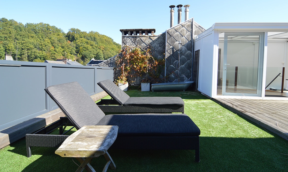 Wat? We vonden een werkelijk schitterend appartement in het centrum van Spa. Dankzij zijn centrale ligging ben je in een mum van tijd aan het Casino van Spa of aan de voet van de unieke lift die je tot aan de Thermen van Spa brengt. Het appartement, volledig in loftstijl, is ideaal voor een romantisch uitje of een vakantie met een bevriend koppel. Je hebt toegang tot twee ruime en gepersonaliseerde slaapkamers, een comfortabele woonkamer met een gezellige open haard en een super uitgeruste keuken. Absoluut uniek is ook het dakterras, 100m² en dat helemaal privé! Bovendien staat op dit terras een authentiek ligbad, ideaal om je te verfrissen op een zonnige zomerse dag.