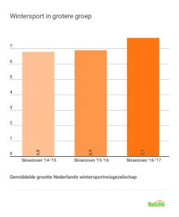 “In het wintersportboekseizoen dat volop aan de gang is, zien we nu al dat +20% meer Nederlanders een wintersportchalet hebben geboekt voor de week van oud en nieuw”, vertelt Wurpel. “Ook piekt het aantal Nederlanders dat op skivakantie gaat tijdens de voorjaarsvakantie van regio Midden en Zuid. Opvallend is verder dat de wintersport steeds meer een groepsvakantie is. De grootte van het reisgezelschap neemt het komende wintersportseizoen met 12% duidelijk toe naar gemiddeld bijna acht personen.”