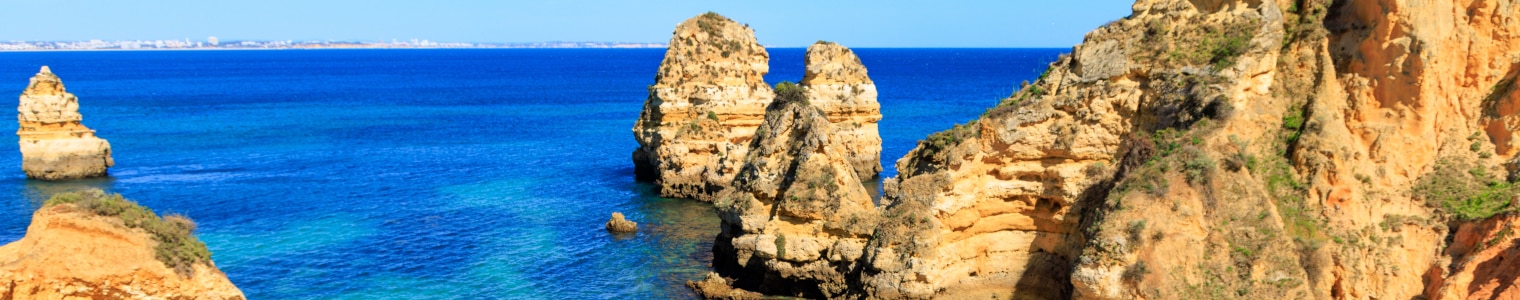 - Geniet van de zon en het strand aan de Algarve-kust, met zijn gouden zandstranden en kristalhelder water.