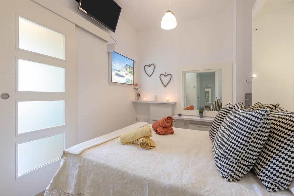 Already in the apartment you have everything you need to make you feel at home. It is distributed all on one floor and has a small terrace where you can cook a delicious barbecue while enjoying the views offered by the accommodation. On the terrace there is a TV. Already inside, a living room is equipped with AC and Smart TV. The induction stove has all the necessary utensils for you to cook comfortably. There is a washing machine, iron and ironing board. The bedroom with double bed has no window but with the door open you have natural light coming in from the terrace. And for your companions, there is a double sofa bed in the living room. If you travel with your baby, we can also provide you with a crib and a highchair. A bathroom with bathtub completes your stay.