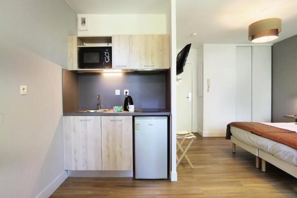 De appartementen zijn ontworpen voor maximaal gemak en comfort, met studio's met een woonruimte met een tweepersoonsbed of twee eenpersoonsbedden. Alle accommodaties zijn ook voorzien van essentiële voorzieningen, zoals een volledig uitgeruste kitchenette en inclusief bed- en badkamerlinnen. Extra diensten, zoals de dagelijkse schoonmaak en de eindschoonmaak, zijn beschikbaar tegen een toeslag. Het aparthotel biedt de ideale balans tussen onafhankelijkheid en hotelachtige diensten voor een onvergetelijk verblijf in Aix-en-Provence.