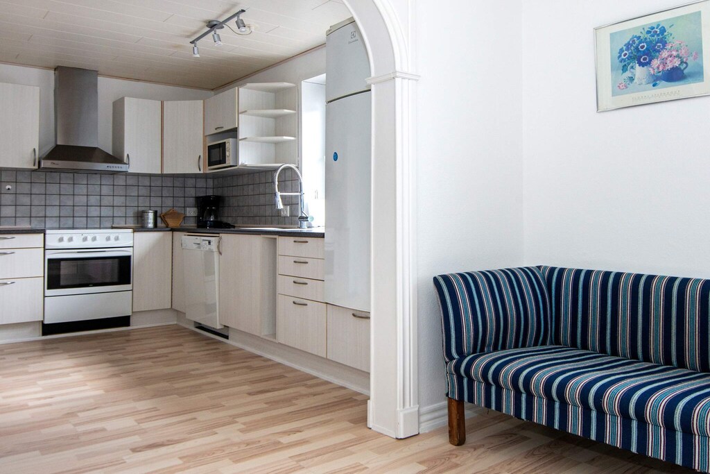Verzorgd vakantieappartement in Arrild, midden in het zuiden van Jutland. Het appartement bestaat uit een praktische entreehal met wasmachine en vriezer, evenals ruimte voor bovenkleding, schoenen, enz. Daarnaast een ruime keuken met vaatwasser en eetgedeelte in open verbinding met de woonkamer met slaapbank voor maximaal twee kinderen. Op de tv zijn Deense en enkele Duitse zenders beschikbaar. Verder is er een grote badkamer met douche en een slaapkamer met 2 eenpersoonsbedden en veel opbergruimte. Aangename vloerverwarming in het hele appartement en een klimaatvriendelijke lucht-lucht warmtepomp die indien nodig verwarmt.