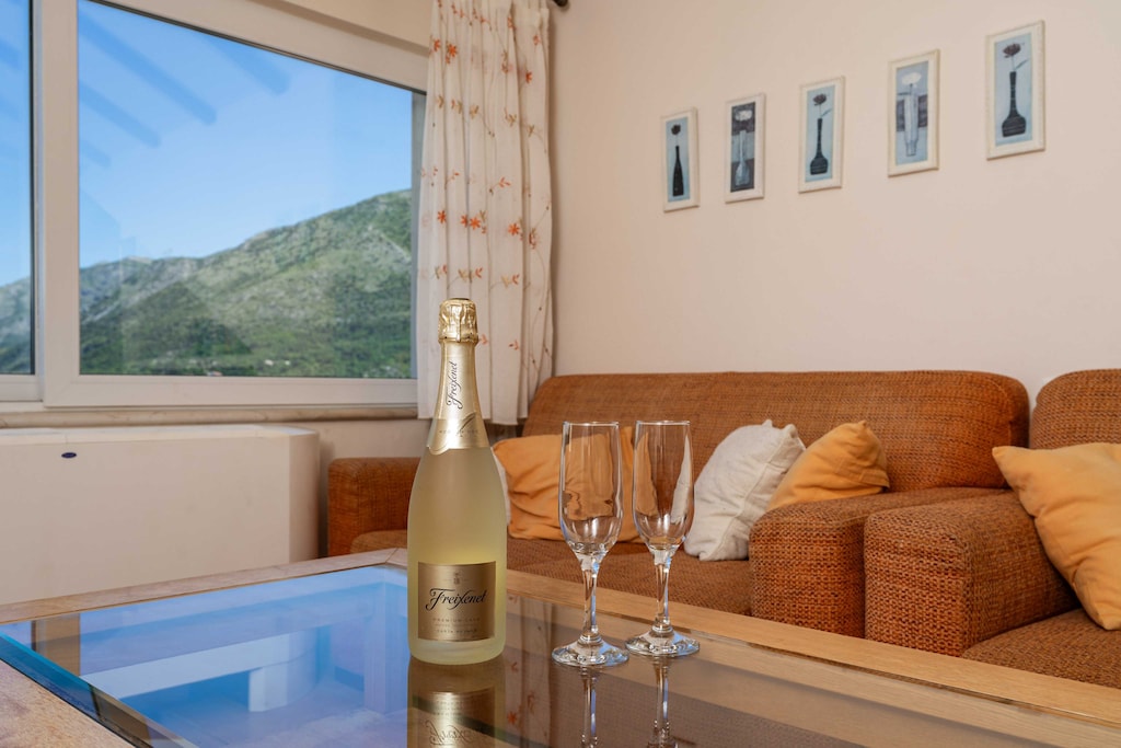 Great place to stay and relax,Amazing panoramic view from our apartment and from the pool area, lots of sun loungers around the pool which was very clean, Pero the host was excellent, both before and during our stay, nothing is too much for him, He organised transport to pick us up from the port and to take us to the airport at the end of our holiday, Apartment was spacious and clean and great to have two bathrooms and washing machine, Air con was excellent in bedrooms and main room, Really good restaurant ',By The Way',and supermarket only a few minutes walk, Cavtat centre was only a ten minute walk down hill, Bus stop that takes you to Dubrovnik is only a few minutes walk, Really lovely place to stay and would strongly recommend