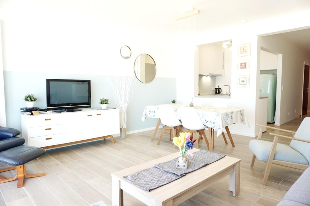 Questo posto è un gioiello! Il soggiorno era luminoso e accogliente, e la TV a schermo piatto era un bel tocco per serate di relax,