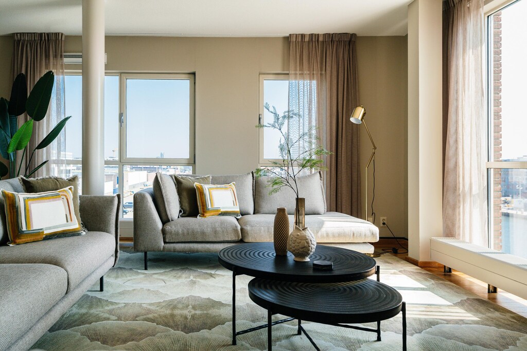 Lejlighedens indretning er moderne og stilfuld, Det føltes luksuriøst uden at være overdrevet,