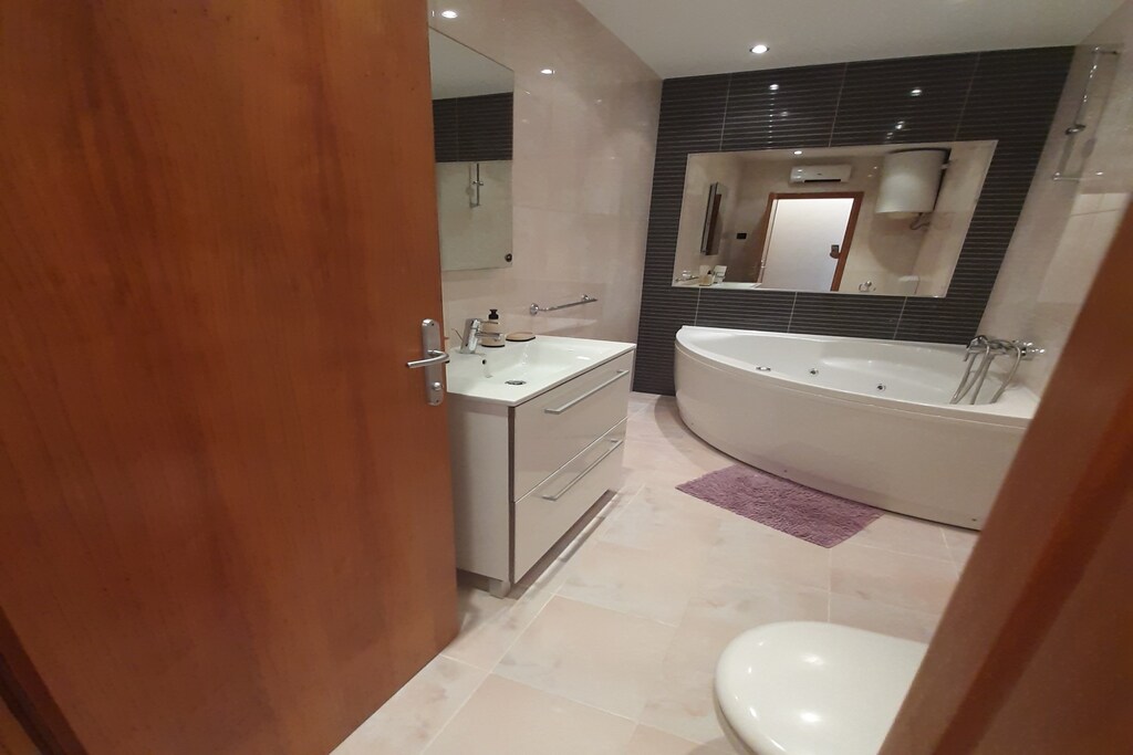 This three bedroom apartment features free WiFi and living room with SAT TV. Kitchen is well equipped with oven, refrigerator, microwave, kettle and toaster. Bathroom comes with shower, bath tub and hair dryer. It will also provide you with a lovely furnished balcony, ironing facilities, washing machine and jacuzzi.