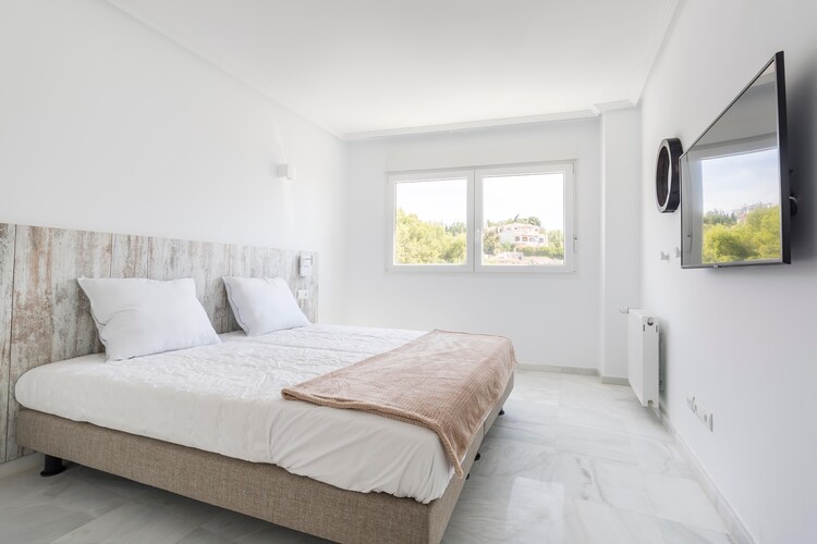 Dit luxe appartement aan de Costa Blanca biedt een mix van moderne elegantie en mediterrane charme. De open woonkamer is voorzien van marmeren vloeren en een smaakvolle inrichting, wat een serene sfeer creëert. Via de openslaande deuren komt u op een gemeubileerd terras met gedeeltelijk uitzicht op de Middellandse Zee, perfect om buiten te dineren. Het appartement is volledig voorzien van airconditioning, wat comfort garandeert op warme dagen, en beschikt over een goed uitgeruste keuken met een oven, vaatwasser en wasmachine.