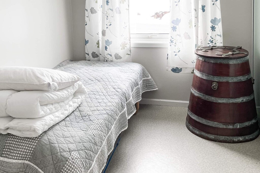 Geräumige Ferienwohnung am fischreichen Våglandsfjord. Die Endreinigung ist bereits im Mietpreis enthalten. Die Ferienwohnung ist eine von zwei Wohnungen, die sich im Haus befinden. Dieses Apartment im Erdgeschoss verfügt über eine separate Küche und über einen Holzofen im Wohnzimmer. Smart-TV mit Chromecast zum Streamen eigener Anbieter. Internetkapazität von 50/150 Mbit. Ein Schlafzimmer hat zusammenstellbare Einzelbetten. Hochstuhl kann auf Wunsch bei Buchung der Ferienwohnung ausgeliehen werden. Ziele in Reichweite für Tagesausflüge mit dem Auto: Kristiansund - die Küstenstadt auf mehreren Inseln mit der ältesten Passagierschifffahrtsgesellschaft der Welt zwischen den Inseln, weiter mit dem Schnellboot zum Fischerdorf Grip. Atlanterhavsveien – das Trollstigen der Küste, Jazz- und Rosenstadt Molde, Trollstigen und Geiranger mit dem schönsten Fjord der Welt, Mardalsfossen – Nordeuropas höchster Wasserfall, Smøla und das lebhafte Fischerdorf Veidholmen. Gute Angelmöglichkeiten im Meer und Süßwasser. Überdachte Filetierbank mit Licht und fließend Wasser. Entfernung zum mietbaren Boot: 300 m Luftlinie. Angelschein für Süßwasser erforderlich! Vor Ort 400 l Gefrierkapazität verfügbar. Boot zu mieten: *ein 16 Fuß Boot mit 40 PS Mercury Motor, GPS / Kartenplotter / Echolot, 6 Rutenhalter.