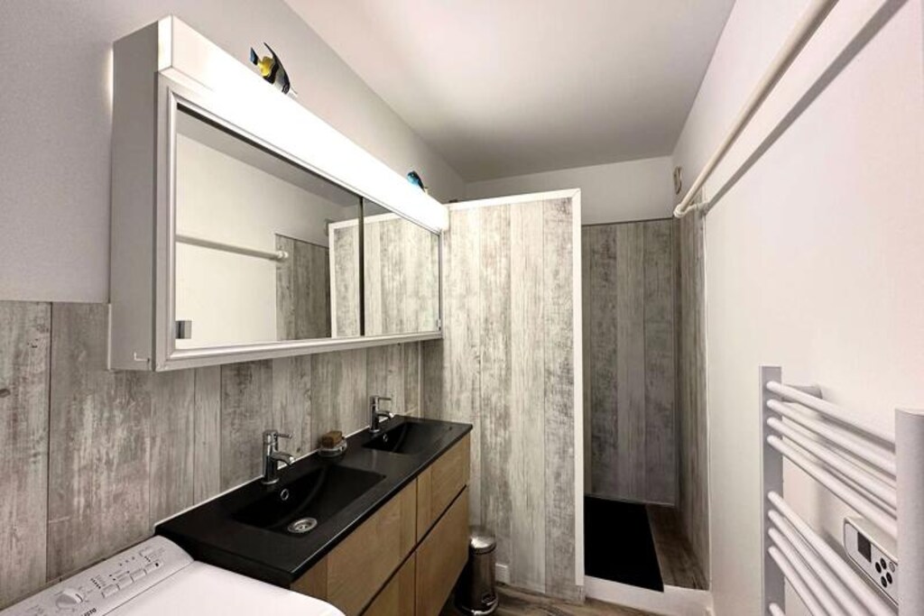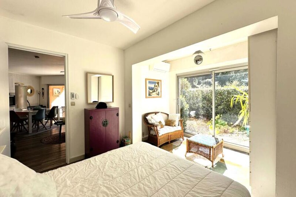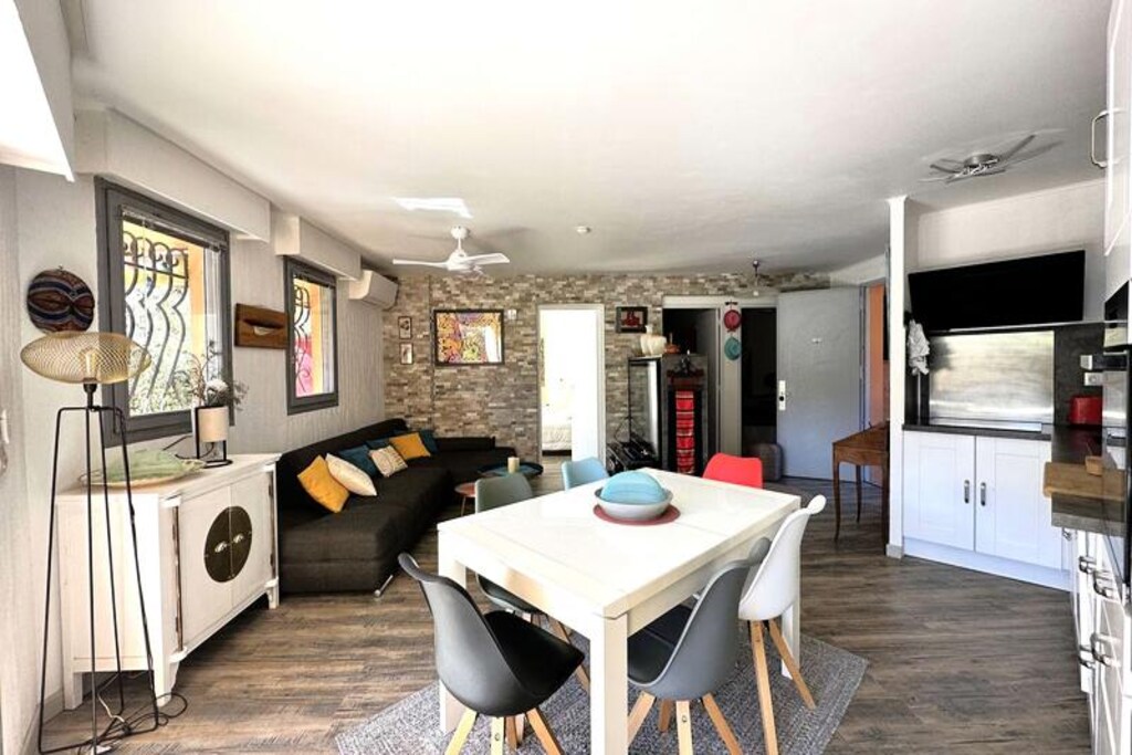 De open woon- en eetkamer gaat naadloos over in een volledig uitgeruste keuken en biedt alle benodigdheden om zelf uw maaltijden te bereiden. Een apart toilet en een doucheruimte zijn gunstig gelegen. Het appartement beschikt ook over een tuin die toegankelijk is vanuit een van de slaapkamers en een rustige plek biedt om te ontspannen na een dag vol ontdekkingen.