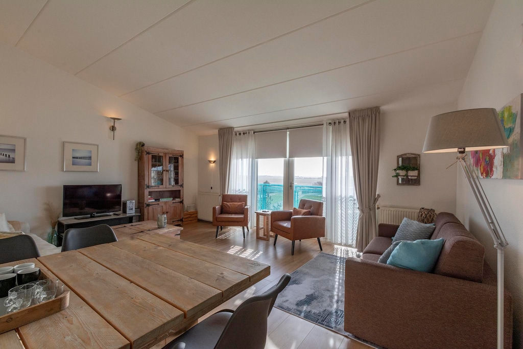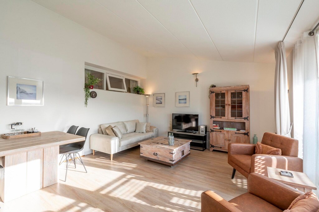 De ruime woonkamer biedt een warme, gezellige sfeer, ideaal om te ontspannen na een dagje strand. De eetruimte biedt comfortabel plaats aan vier personen, perfect om samen te eten of vrienden te ontvangen. De keuken is van alle gemakken voorzien, dus koken is zowel gemakkelijk als aangenaam.