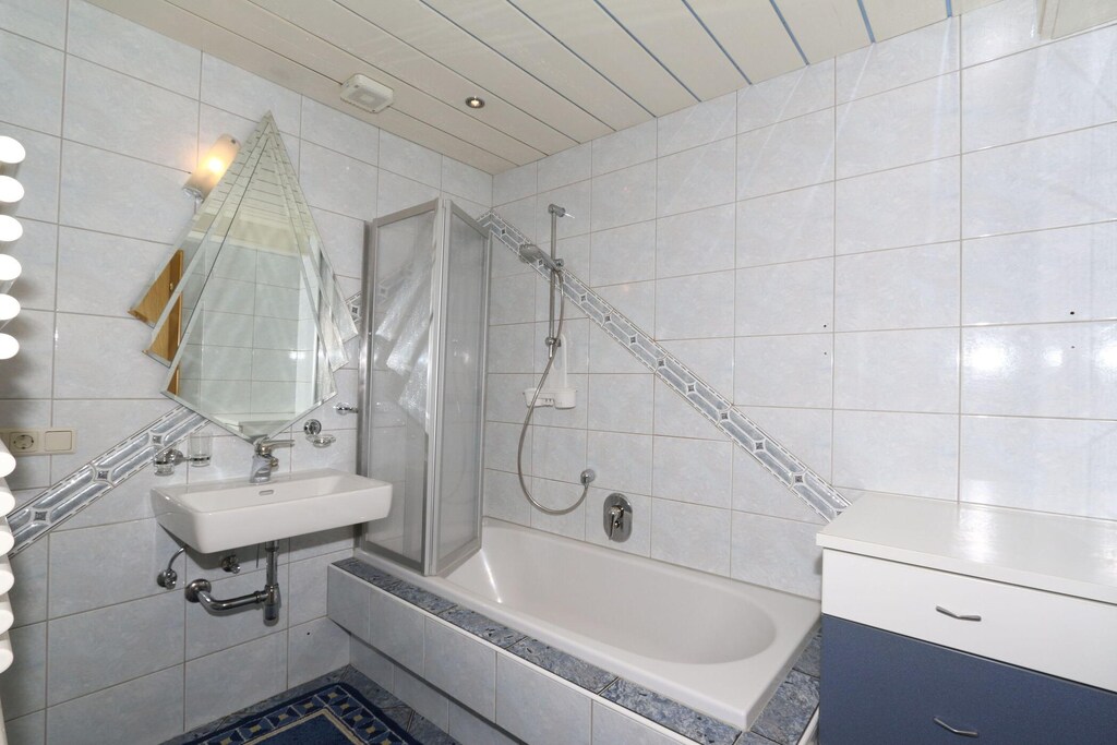 Die Wohnung hatte einen rustikalen Charme, den wir wirklich zu schätzen wussten, Es war schön, nach einem langen Tag auf den Pisten zurückzukehren und in einer so warmen Atmosphäre zu entspannen, Die Badewanne war auch ein schöner Akzent!