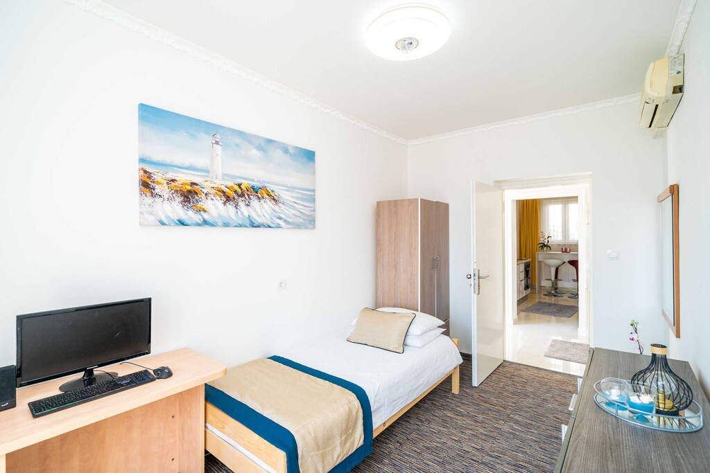 Spotlessly clean &, cozy family apartment close to everything and amazing sea view from the terrace!We absolutely loved our stay at our 2 x bedroom',s apartment which exceeded our expectations!\r\nThe hosts were so absolutely welcoming and made it smoothly possible to both check in earlier on our arrival and check out later in the evening as we had an evening flight, With two small children we really appreciated this flexibility and smooth arrangements, The apartment itself is so lovely and spotlessly clean - I would really recommend it for a family of four or five, There',s even play station and netflix which was quite nice plus for the children, There is a small supermarket and bakery just few steps away and the most lovely beach(es) 5-minutes-walk away, The view from the big terrace to the adriatic sea is amazing and as a highlight there is a jacuzzi on the terrace - just for your own use, With july',s heatwave we really enjoyed cooling in the terrace and also thanking our hosts that the water wasn',t too warm but just perfectly cooling, We would definitely go back to this one, one of the best apartments we',ve experienced so far!