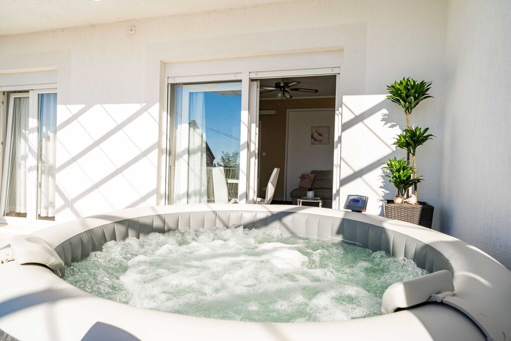 Fantastic stay in a beautiful location, 8 minutes walk to the beach,The apartment was very spacious for four adults, The jacuzzi was a lovely treat after a hot day in the sun, The aircon worked so well and there was more than enough towels available, The hosts were so lovely answered any queries we had really quickly â¦,thank you Marin for your kind attention,