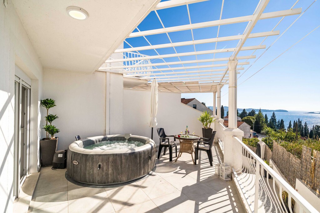 This is our first break using a self catering apartment, it wonât be our last! Our stay was wonderful, helped by gloriouI loved everything about this property, Valimar and Delaborka made us feel so welcome and could not have been more helpful getting us settled in, even taking us to the supermarket, a lovely friendly family!\nThe apartment was spotlessly clean and very well equipped, everything we needed was there and a lot of extras which made our stay even more pleasant, Installing a hot tub as a surprise for us was the icing on the cake! The balcony has a sea view and you can see lovely sunsets, There is an outside BBQ at the back of the property should you want to use it, Also wash8ng machine and drier should you need it,\nMlini is a lovely little town and has several beaches within walking distance if the apartment, the shopping mall is about a 10 minute walk, Kupari about the same, the bus stop for Cavtat and Dubrovnik if a couple of minutes walk away, The main road is very busy but once crossed there are lots of footpaths down to the esplanade which runs from Sbreno past Mlini and then wooded trails to Solini and Platt,