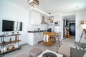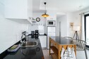 Het appartement beschikt over een volledig uitgeruste moderne keuken met hoogwaardige apparatuur, ideaal voor zelfcatering. Een strakke badkamer, compleet met douche en schone handdoeken, zorgt voor comfort en privacy.