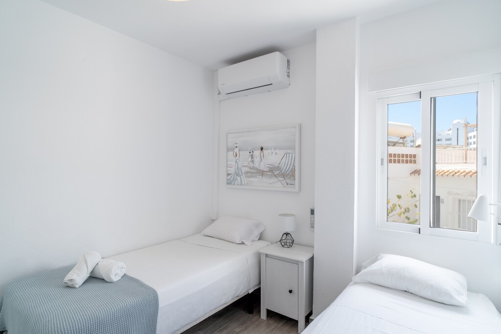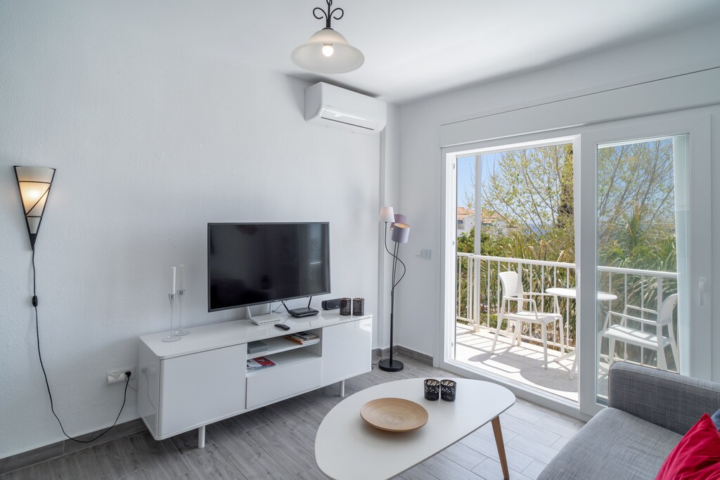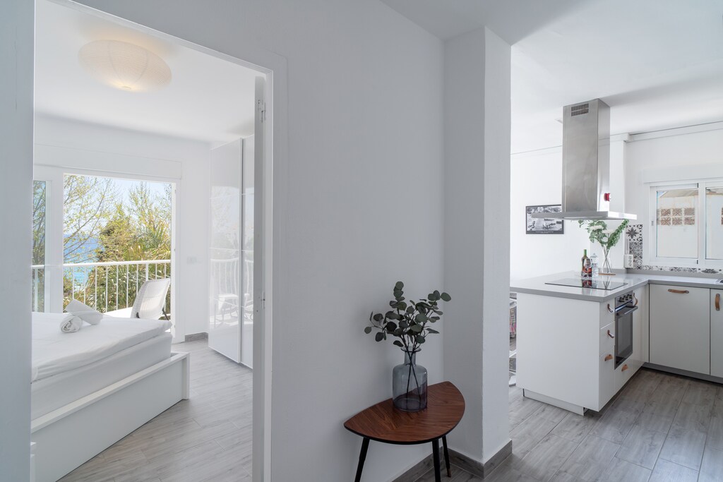 Dit zonnige, centraal gelegen appartement met twee slaapkamers biedt een prachtig uitzicht op de Middellandse Zee, zowel vanuit de woonkamer als de hoofdslaapkamer. Het appartement biedt comfortabel plaats aan maximaal vier gasten, met een hoogwaardig tweepersoonsbed in de hoofdslaapkamer en twee eenpersoonsbedden in de tweede slaapkamer. Het is uitgerust met moderne voorzieningen, waaronder airconditioning, snel internet en internationale tv-zenders, voor een ontspannen verblijf. Het appartement beschikt ook over een volledig uitgeruste keuken, zodat gasten gemakkelijk maaltijden kunnen bereiden. Gasten kunnen genieten van het prachtige uitzicht op zee vanaf het balkon, dat zowel vanuit de woonkamer als de hoofdslaapkamer toegankelijk is.