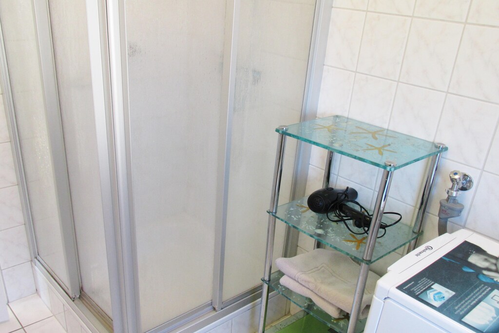 Het onderste vakantieappartement is geschikt voor 4 personen en beschikt over een woonkamer met een comfortabele bank, waar u 's avonds heerlijk televisie kunt kijken of naar muziek kunt luisteren. Er zijn ook twee slaapkamers met tweepersoonsbedden. Voor de allerkleinsten zijn er een babybedje en een kinderstoel aanwezig. De badkamer is voorzien van douche en toilet. Het terrein is omheind. Nog een pluspunt: de supermarkt en de bakkerij bereikt u heel snel via de tuinpoort, op minder dan 100 meter afstand.