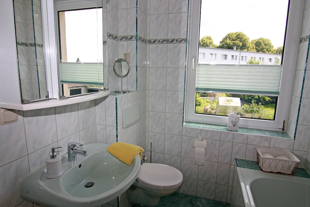 Dit stijlvolle en zorgvuldig ingerichte tweekamerappartement in Neubukow is perfect voor stellen of kleine gezinnen. Het bevindt zich op de eerste verdieping en beschikt over een lichte woonkamer met een gezellige zithoek, een flatscreen-tv, een selectie boeken en een kleine kitchenette. De slaapkamer is voorzien van een tweepersoonsbed en voldoende opbergruimte, terwijl de badkamer is uitgerust met zowel een bad als een douche.