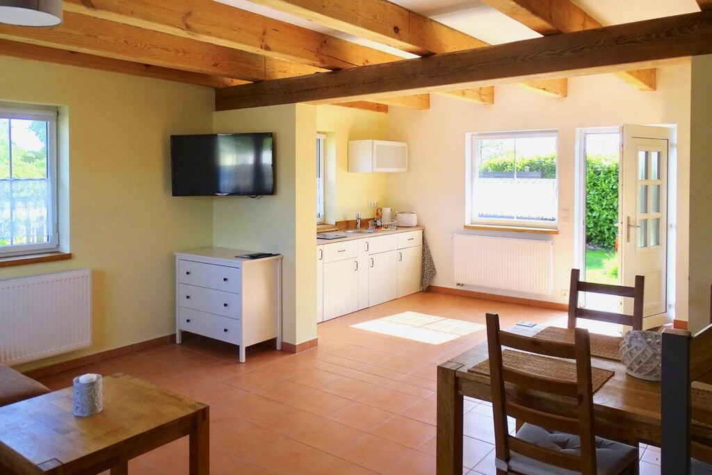 Door een familie gerund appartementenhuis met vier comfortabel ingerichte vakantieappartementen op een zonnige locatie en op slechts 1,5 km van het Achterwasser in de wijk Lütower van Neuendorf. Elk appartement heeft wifi. De bij het appartementencomplex behorende herberg kenmerkt zich door een nuchtere keuken en biedt voornamelijk gerechten uit de regio. Kleine hapjes of gebak worden ook geserveerd op het ruime terras met zijn gezellige sfeer. In de periode van mei t/m september kan ter plaatse (tegen betaling) een zeilboot gehuurd worden. Aan de zuidkust van Gnitz ligt een natuurgebied dat ideaal is voor korte wandelingen, die je kunt afsluiten in de gezellige biertuin met een koel blond biertje. Je woont niet ver van het binnenwater. Ook het zandstrand in Zinnowitz is gemakkelijk te bereiken, waar u op warme zomerdagen kunt afkoelen in de Baltische Zee. Hoogtepunten: Alle op verbruik gebaseerde energiekosten inbegrepenWLAN inbegrepen10% korting in het eigen restaurantActiviteiten in de buurt: Wandelingen en fietstochten door de prachtige natuur van Usedom. Een leuke dagtocht op de fiets is de rondreis rond het schiereiland Gnitz - Zinowitz - Trassenheide - Wolgast - Krummin - Rondje schiereiland Gnitz, die ongeveer 55 kilometer lang is. U rijdt door het midden van het eiland Usedom, bezoekt het strand, maakt een omweg naar de residentie van de oude Pommerse hertogen en rijdt terug door het rustige achterland van het schiereiland Gnitz.