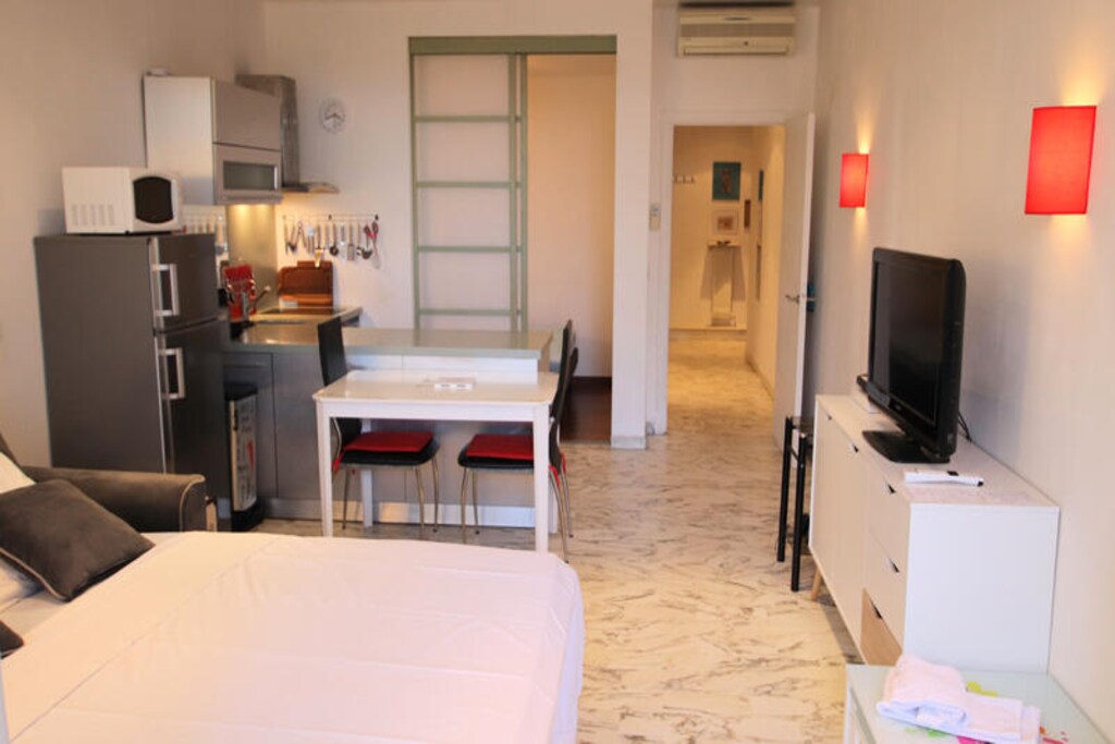 Het appartement ligt op slechts 150 meter van de tramhalte en biedt gemakkelijke toegang tot de hele stad en de omliggende gebieden. Het strand ligt aan de overkant van de straat, waardoor het voor gasten ongelooflijk gemakkelijk is om van de zon en de zee te genieten. Voor degenen die de omgeving willen verkennen: op slechts 30 meter afstand vindt u een verscheidenheid aan winkels en restaurants, met tal van mogelijkheden om te dineren en te winkelen. De locatie van het appartement aan de Promenade des Anglais plaatst het in het hart van Nice, waardoor gasten de levendige sfeer van deze prachtige kuststad kunnen ervaren.