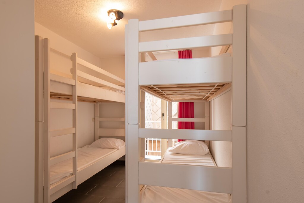 Dit gezellige appartement met 2 slaapkamers biedt een comfortabel verblijf voor maximaal zes gasten. De eerste slaapkamer beschikt over een tweepersoonsbed met dekbed voor twee personen, terwijl de tweede slaapkamer is uitgerust met twee stapelbedden, elk met een dekbed voor één persoon. Ideaal voor gezinnen of kleine groepen. Het appartement is rookvrij en huisdiervrij. Er liggen geen tapijten, zodat er een schone en allergievriendelijke omgeving ontstaat. Gasten zullen ook de gemakken van de lift en het ruime terras waarderen, ideaal om buiten te ontspannen. Het appartement biedt een open uitzicht en is ontworpen voor een rustig en comfortabel verblijf.