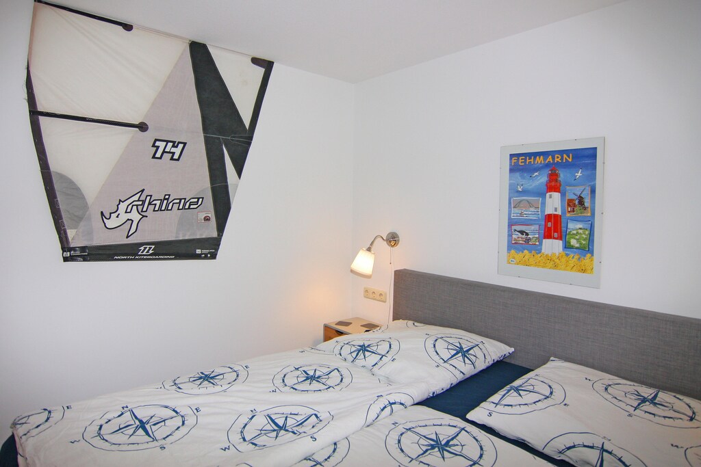 Licht en vriendelijk vakantieappartement op de 1e verdieping aan de achterzijde van het vakantiecomplex. Het appartement heeft een ruime woon-eetkamer met aangrenzende keuken, 1 slaapbank, hal, slaapkamer met ruimte voor een aanwezig kinderbedje en een doucheruimte. Er is een Frans balkon, stereo, flatscreen TV en laminaat en tegels door het gehele appartement. Er is gratis WiFi beschikbaar, evenals een 2e tv in de slaapkamer - afstandsbediening met Netflix-knop! De keuken is volledig uitgerust met servies, glazen, kookgerei, koffiezetapparaat, Krups capsulemachine, broodrooster, waterkoker, fornuis met 4 kookplaten en oven, koelkast met vriesvak en vaatwasser. Verse broodjes voor het ontbijt zijn verkrijgbaar in het café op de begane grond van het vakantiecomplex. Inbegrepen is een ondergrondse parkeerplaats (duplex) met de mogelijkheid om fietsen en surfplanken te stallen. In de kelder van het huis is er ook een wasmachine die op munten werkt en een droger die op munten werkt. In het dorp in de directe omgeving van het appartement zijn er restaurants, cafés, snackbars, bierkroeg, fietsverhuur en kleine winkeltjes, surfschool en surfshops en een viskotter. Zwem- en surfmogelijkheden zijn er in Orth, de badstranden Flügge en Püttsee zijn snel te bereiken met de fiets of met de auto. De haven met zijn maritieme sfeer biedt een breed aanbod: barbecueplaatsen, kinderspeelplaats, diverse restaurants en winkels. Er is een surf-, zeil- en kitesurfschool. Op slechts enkele meters van de haven bevindt zich een grote, kindvriendelijke badplaats.