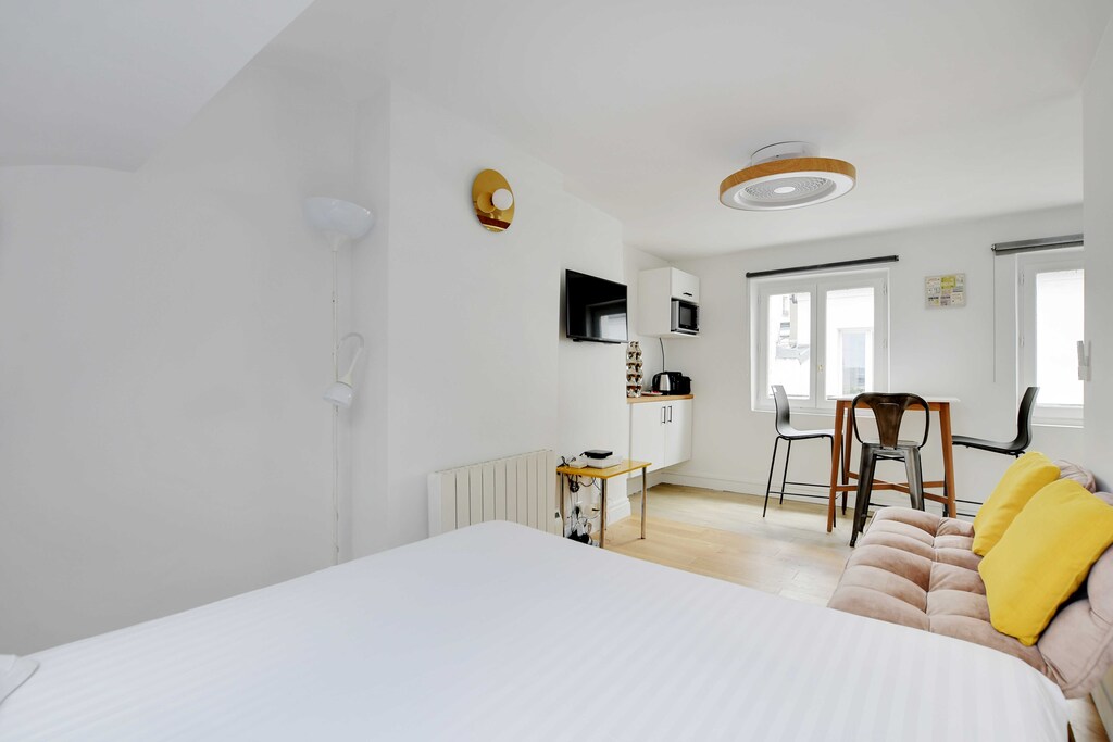 Jag njöt verkligen av min tid i denna charmiga studio, Storleken var precis rätt för en ensamresenär, och den närliggande coulée verte var en härlig plats för morgonpromenader, Rekommenderar starkt detta för alla som söker en lugn tillflyktsort i ett livligt område,