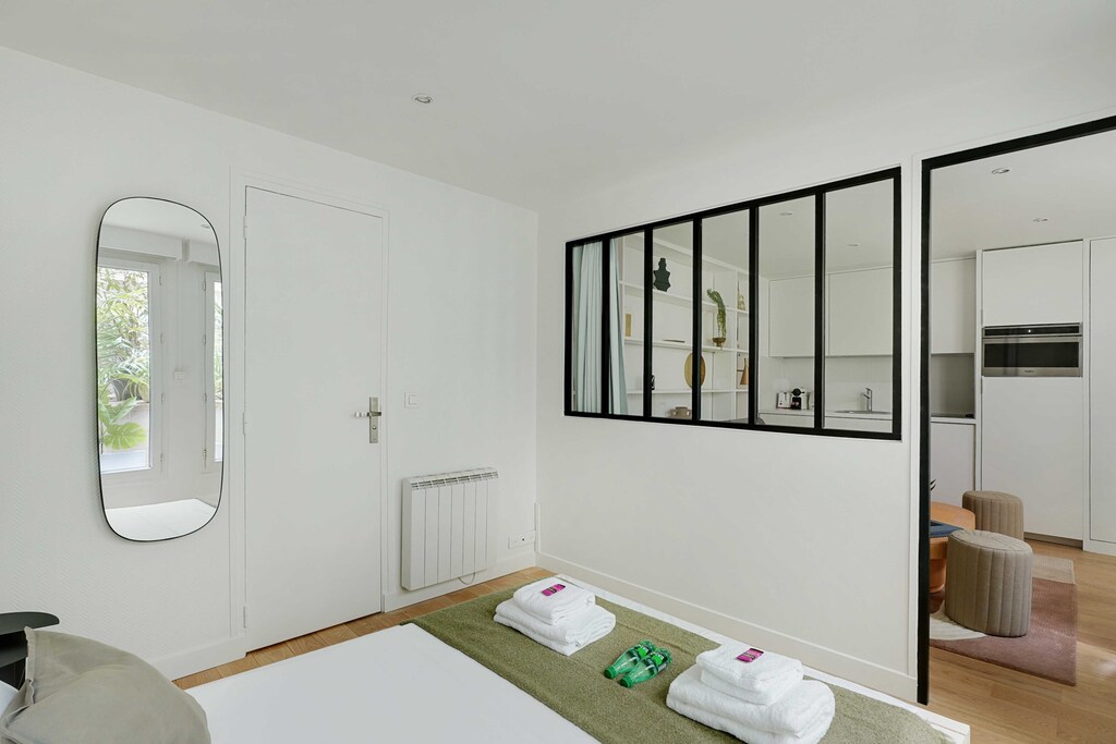 We absolutely adored the flat! Ideal for a brief visit, Compact, pleasant, and comfortable, The location is AMAZINGLY COOL! A stunning historical structure with a Parisian atmosphere, A charming little garden, First floor and an elevator - convenient for those with luggage,