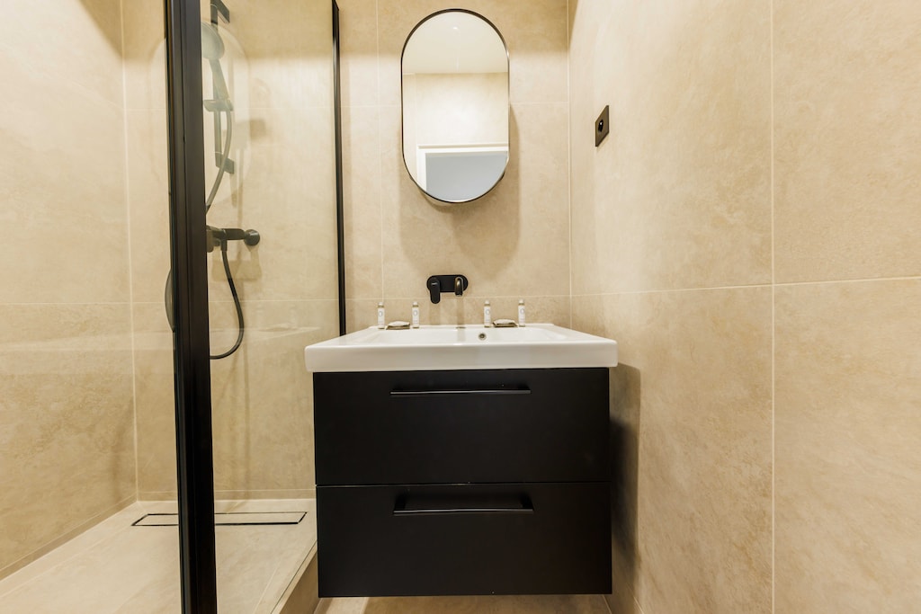 Douche, Wastafel, Strijkplank, Strijkijzer, Haardroger, ,