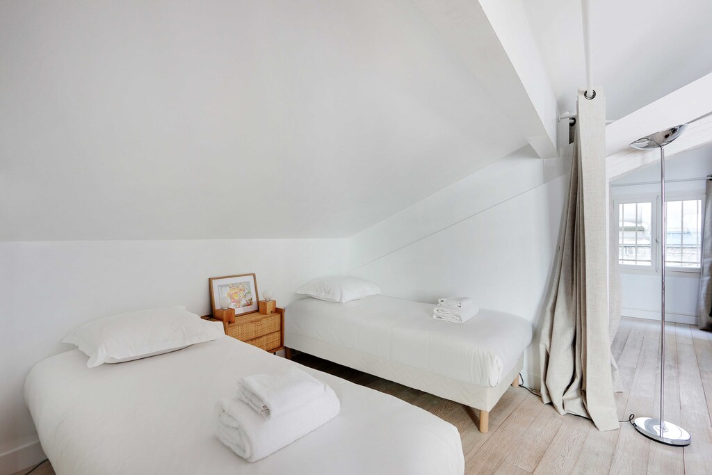 Questo posto ha superato le nostre aspettative! Le due camere da letto offrivano ampio spazio e ci è piaciuta l'atmosfera accogliente, Perfetto per una fuga in famiglia a Parigi,