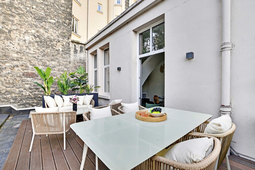 The apartment was ideal for our requirements, Its location is conveniently near a metro station and a brief stroll to a taxi stand, The neighbourhood boasts an incredible artisan bakery just a short walk away, We purchased fresh orange juice and berries from the mini grocery store adjacent to the apartment, Our host, Amelie, was very responsive to any queries we had, Everything was tidy, clean, and free of clutter, Essential items like shampoo, body soap, and extra towels were provided, Additional amenities included a fan, hairdryer, coffee machine, and an electric kettle, The apartment had large windows for natural light and dark curtains for a good night's sleep, A unique feature was the spacious patio attached to the living room, a perfect spot to unwind and observe the city life, The apartment is situated on the second floor, so it's raised from the street, However, the elderly should note that there is a staircase leading up to the apartment, We had a delightful stay!