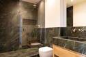 A recently refurbished flat situated just above the Yves Saint Laurent Museum, The apartment is modern, expansive, and minimalist in design, It offers four comfortable bedrooms: one master with an ensuite bathroom including a toilet, two standard rooms with ensuite showers but no toilet, and one standard room without an ensuite, There is also a powder room with a toilet in the living room, and a full toilet with a shower just outside the master bedroom, The building is equipped with triple-glazed floor-to-ceiling windows that effectively mute the hustle and bustle of the Parisian streets, The building is highly secure, requiring passage through three separate combination locks to access the apartment, The regular guest elevator can only descend from the apartment, not ascend from the ground floor, For upward travel, we had to utilize a service elevator, The location is incredibly central, allowing for easy walks to the Champs-Ãlysées and the Arc de Triomphe, This apartment comes highly recommended,