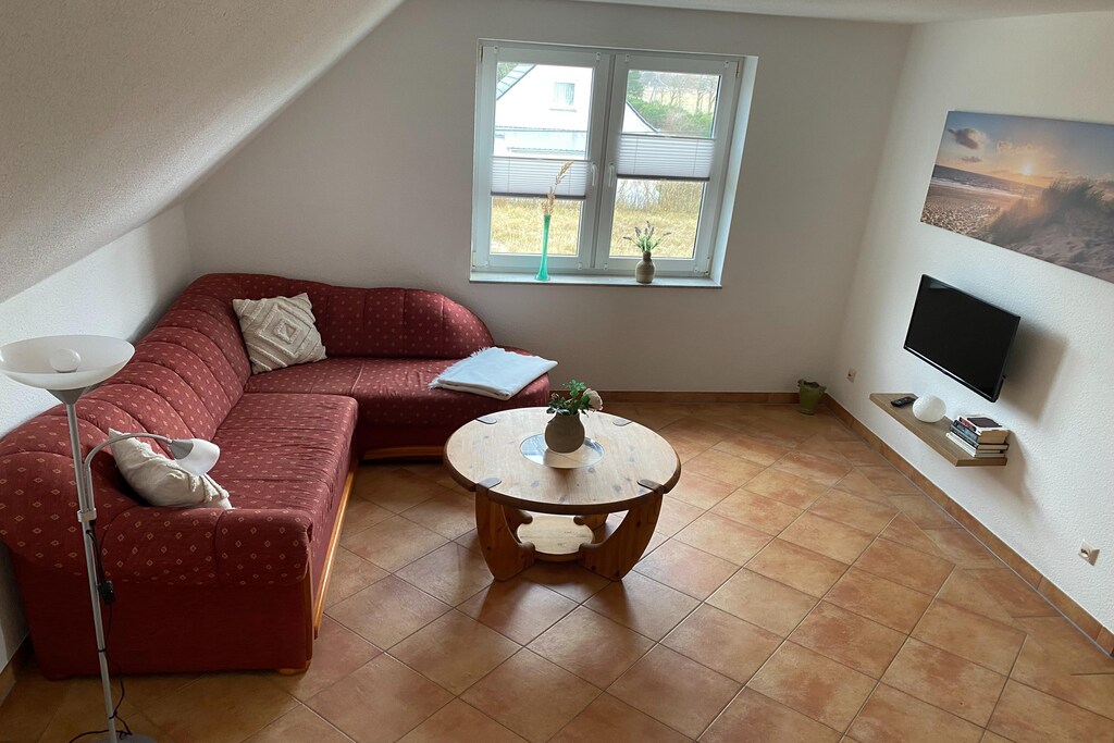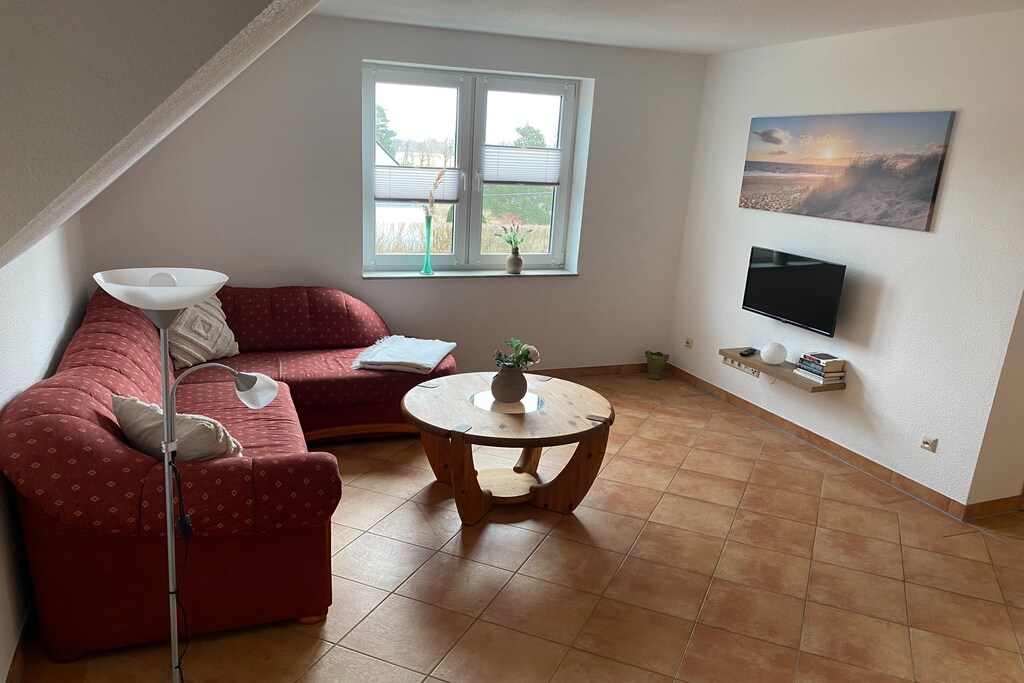 Dit charmante appartement met twee verdiepingen ligt op slechts 1,5 km van het schilderachtige Bodstedter Bodden en het zandstrand van Pruchten en is ideaal voor stellen of kleine gezinnen die op zoek zijn naar rust aan de kust met landelijke charme. De eerste verdieping is bereikbaar via een buitentrap en beschikt over een lichte woon-/eetkamer met satelliet-tv, een slaapbank en een eettafel voor ontspannen maaltijden.
